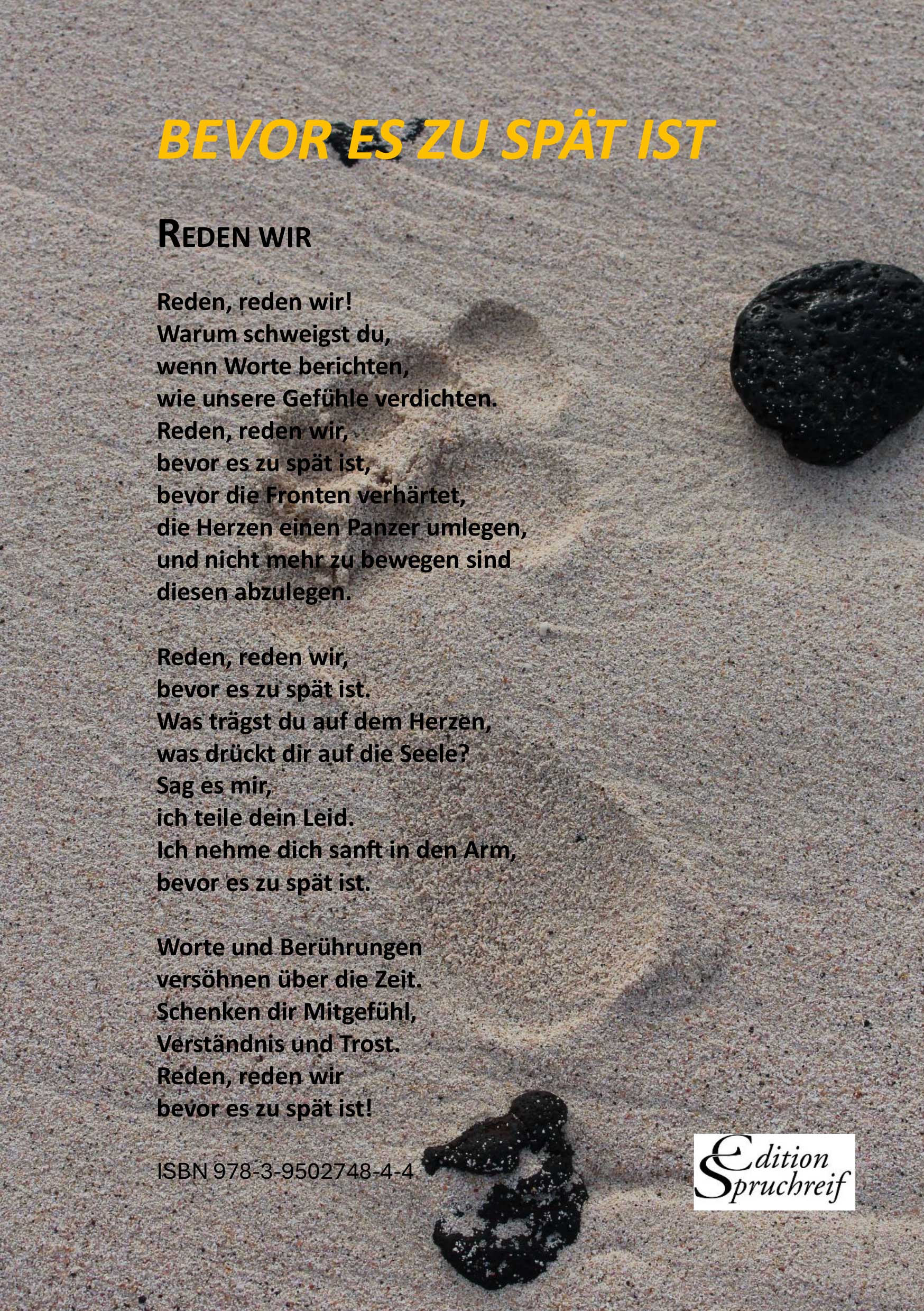 Ihre Gedichte, wie „Klagelied der Erde“, „In Liebe für alle Kinder“, „Sprachgut“, „Reise ins Ich“ wollen aufrütteln, aufzeigen, berühren, „bevor es zu spät ist.“